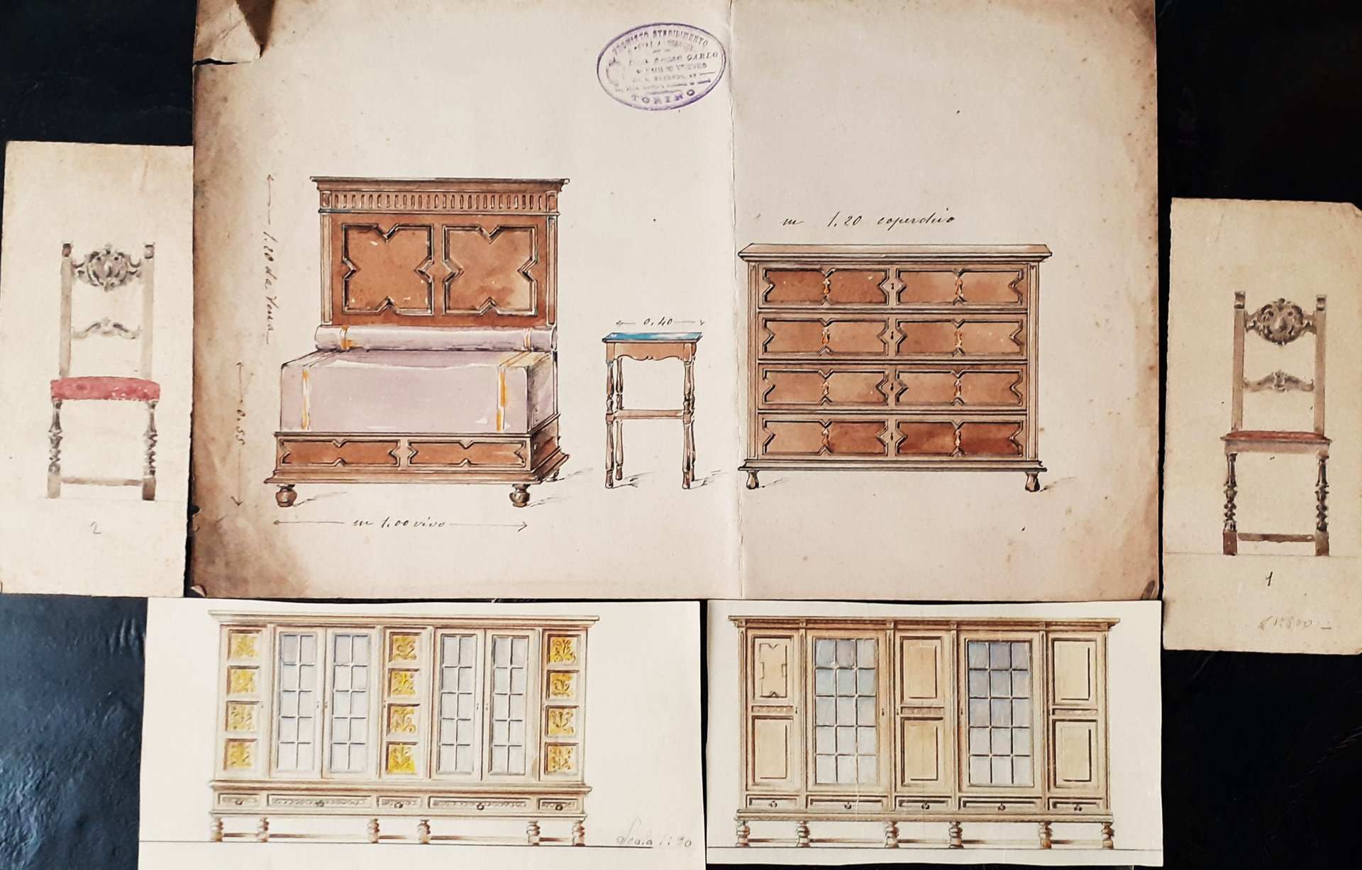 Cinque bozzetti di Emilio Treves Mobili d'arte Torino 1910 circa