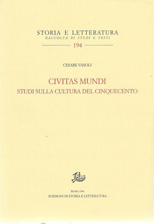"Civitas mundi" "Studi sulla cultura del Cinquecento"