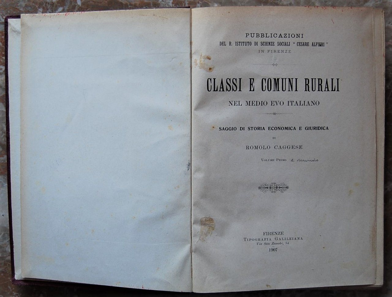 CLASSI E COMUNI RURALI NEL MEDIO EVO ITALIANO. SAGGIO DI STORIA ECONOMICA E GIURIDICA.