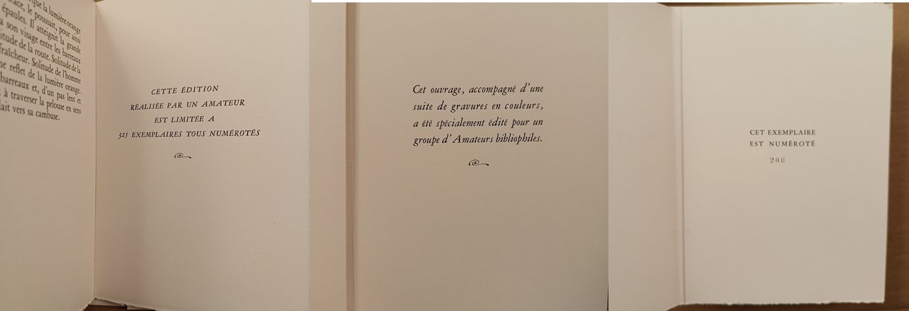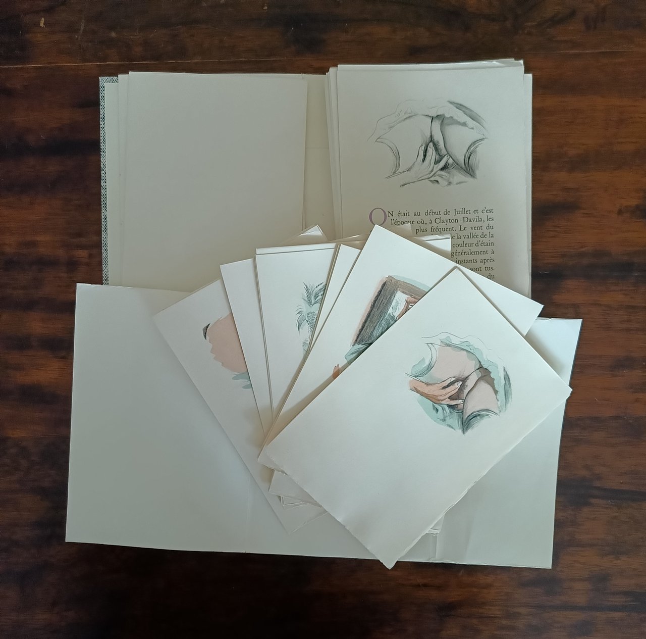 In 8° Quartini sciolti, copertina incamiciata, coperta rigida con dorso telato in cofanetto rigido. Pp. 165 Con 18 illustrazioni b/n e una suite di 18 tavole sciolte con gli stessi soggetti a colori. Le illustrazioni sono attribuite a Gaston de Sainte Croix Edizione di 325 esemplari numerati, ns n 206 Leggero foxing al dorso e un piccolo segno a biro blu all'occhiello