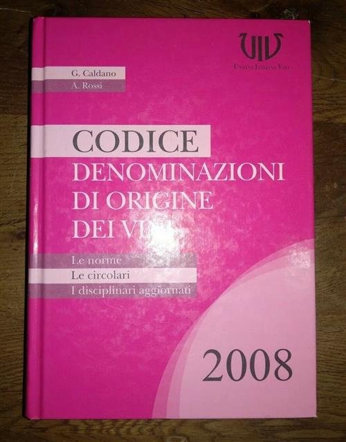 Dettagli Libro<br><br>Sku: PZZLB103761<br>Titolo: Codice Denominazioni Di Origine Dei Vini. Le Norme, Le Circolari, I Disciplinari Aggiornati 2008<br>Autore: G. Caldano, A. Rossi<br>Editore: Uiv<br>Anno: 2008<br>Pagine: 1759<br>Formato: Rilegato<br><br>
