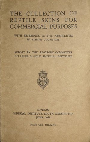 Collection of reptile skins for commercial purposes, with reference to the possibilities in Empire countries. Report by the Advisory Committee on Hides & Skins, Imperial Institute.