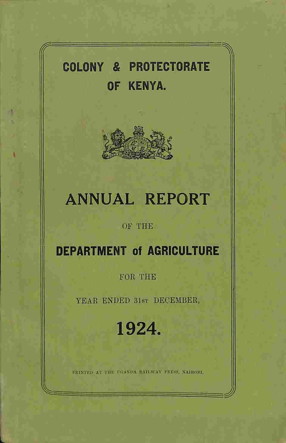 Colony and Protectorate of Kenya. Annual Report of the Department of Agriculture for the year