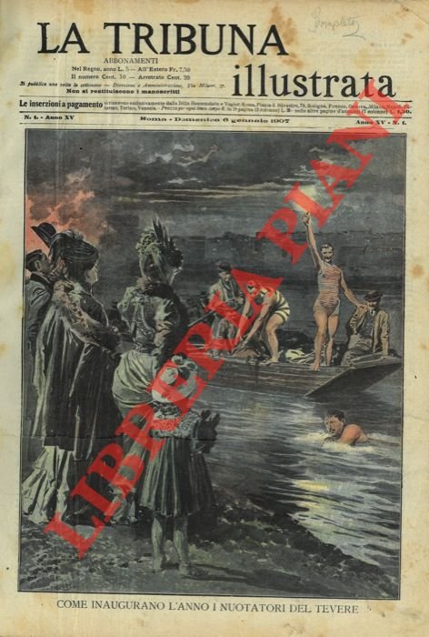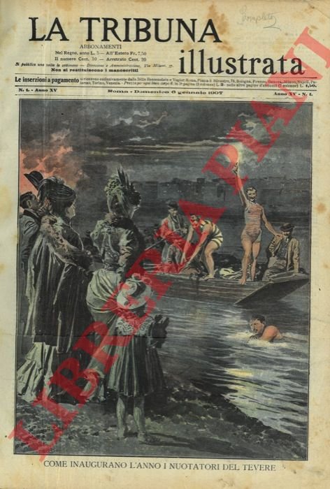 Roma, 1907, 6 gennaio , copertina illustrata a colori in fascicolo originale completo di pp. 16 de "La Tribuna illustrata" .