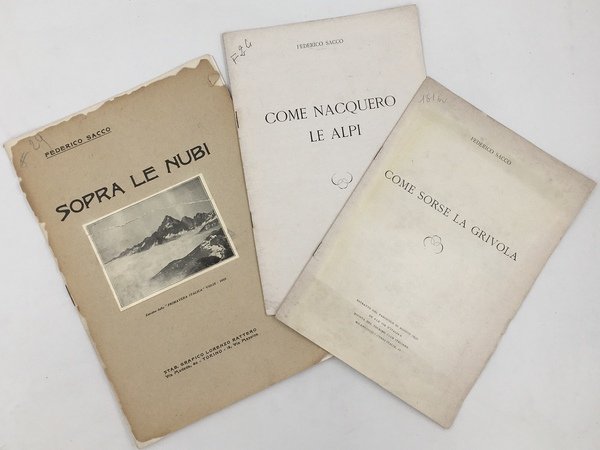 Come NACQUERO le ALPI + Come SORSE la GRIVOLA (2 estratti orig.da "Le Vie d'Italia" maggio e agosto 1930) + SOPRA le NUBI.(Estr. orig. da "primavera Italica", 1925) + L'ALPINISMO, Tip. Anfossi | Rare and modern books | Sacco Federico (Fossano 1864 - Torino 1948)
