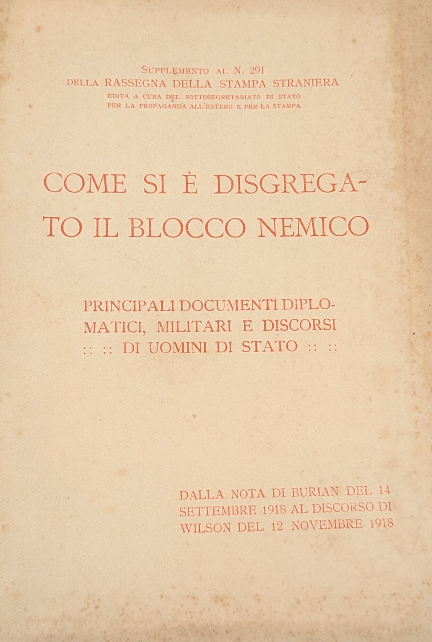 COME SI È DISGREGATO IL BLOCCO STRANIERO. PRINCIPALI DOCUMENTI DIPLOMATICI, MILITARI E DISCORSI DI UOMINI DI STATO