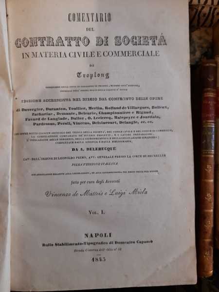 Comentario del contratto di società in materia civile e commerciale | Rare and modern books | Troplong