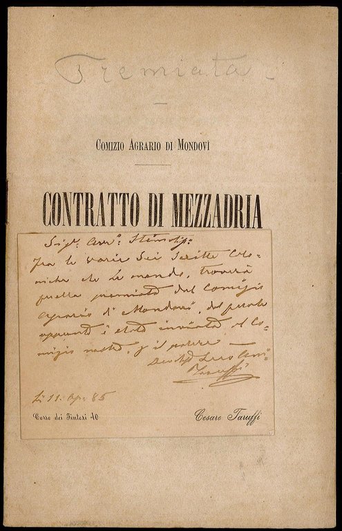 Comizio Agrario di Mondovì - Contratto di mezzadria e locazione parziale di fondi
