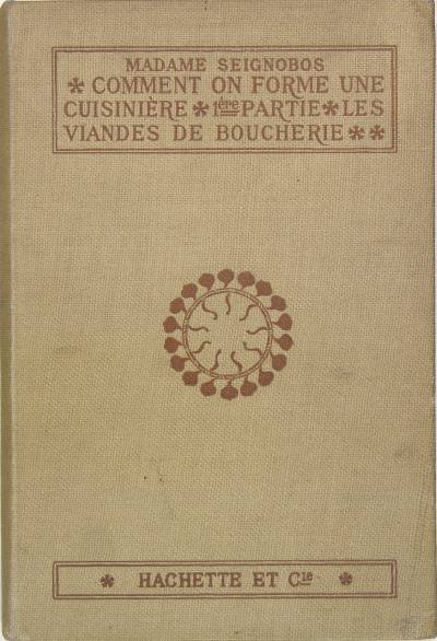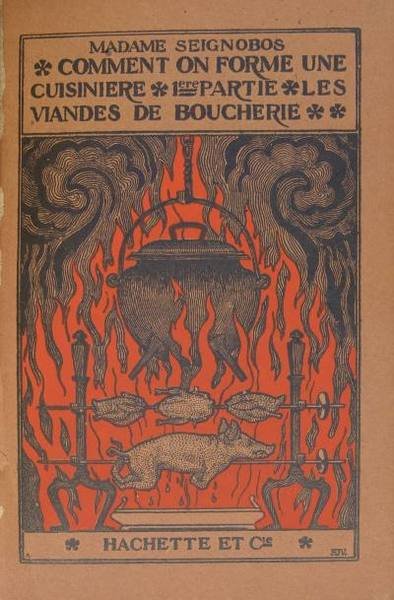 Hachette, Paris, 1913. In/8 reliure toile éditeur, couvertures conservées, illustrations in-texte, 82 pages. Ex libris du grand cuisinier Léon de Lyon. Un utile mémento de la cuisinière sur la durée des cuissons; Le boeuf, le mouton, le veau, le porc frais. et au préalable quelques conseils à la ménagère de 1913 : comment faire son feu, le fourneau au charbon, la cuisine au gaz, comment on devient rôtisseur. Jolie couverture conservée en couleur.