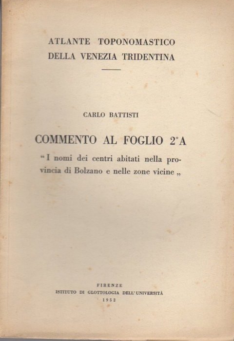 Commento al foglio 2°A: i nomi dei centri abitati nella provincia di Bolzano e nelle zone vicine. | Rare and modern books | Battisti, Carlo.