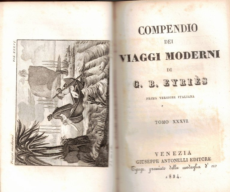 COMPENDIO DEI VIAGGI MODERNI. TOMO XXXV (35) & TOMO XXXVI (36). - Prima versione italiana... Compendio dal 1780 fino ai nostri giorni che contiene ciò che vi ha di più notabile, di più utile e di meglio avverato nei paesi dove penetrarono i viaggiatori più rinomati; i costumi degli abitanti, la religione, le usanze, arti e scienze, il commercio, le manifatture, ec. di G.B. Eyriès, uno dei principali compilatori degli annali dei Viaggi.