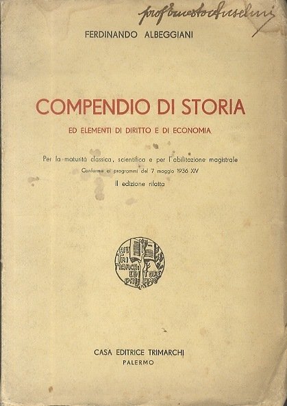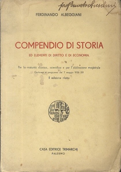 Compendio di storia ed elementi di diritto e di economia per la maturità classica, scientifica e per l'abilitazione magistrale. | Rare and modern books | Albeggiani, Ferdinando.