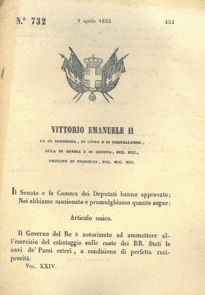 con cui il governo del Re autorizza le navi estere al cabotaggio sulle coste del regno.