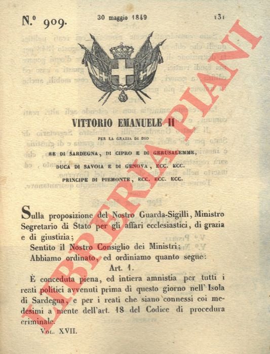 con cui si concede piena ed intera amnistia per i reati politici avvenuti prima del 30 Maggio.