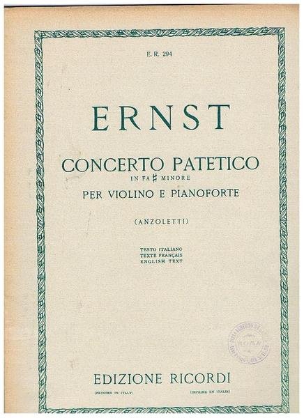 Concerto patetico in Fa diesis minore Op. 23 per violino e pianoforte. Edizione riveduta da Marco Anzoletti.