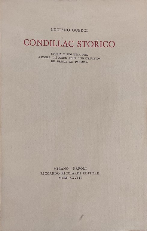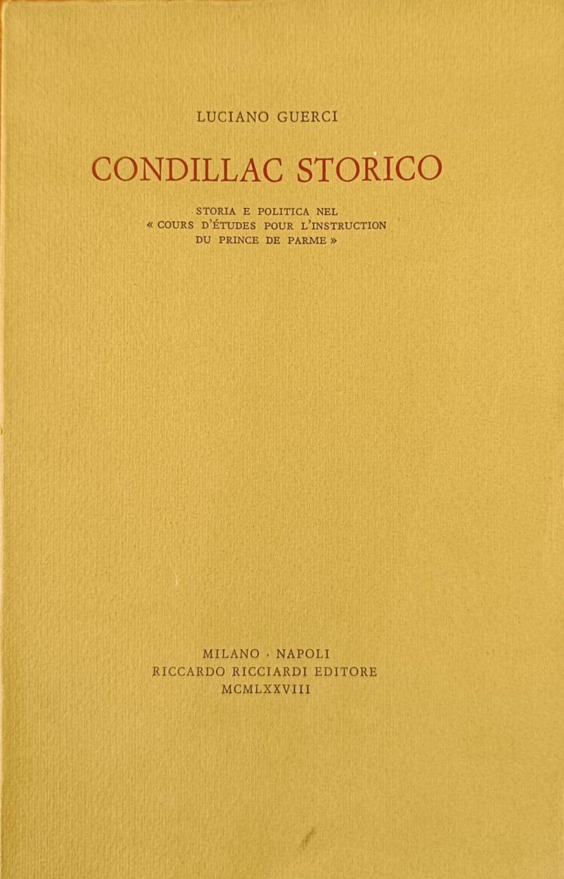 CONDILLAC STORICO. STORIA E POLITICA NEL "COURS D'ETUDES POUR L'INSTRUCTION DU PRINCE DE PARME"