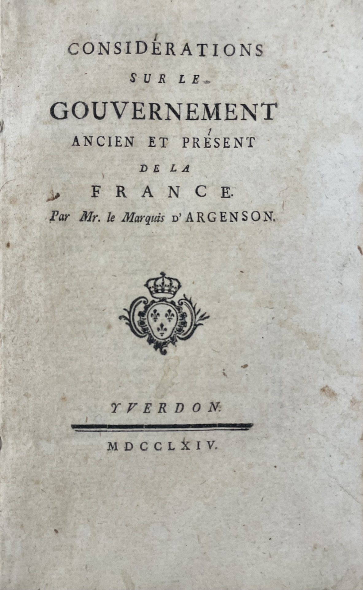 CONSIDERATIONS SUR LE GOUVERNEMENT ANCIEN ET PRESENT DE LA FRANCE