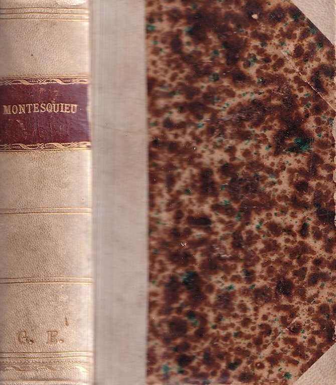Edizioni francesi / French editions - Volume in mezza pergamena che raccoglie due opere (originariamente in tre volumi distinti): Considérations sur les causes de la grandeur des Romains et de leur décadence [Librairie de la Bibliothèque Nationale, 1882, 5e édition, 190 pp.) - Lettres persanes [Bureaux de la Publication, Paris, 1883, 192 + 192 pp.). Ordinari segni del tempo, nel complesso buon esemplare.