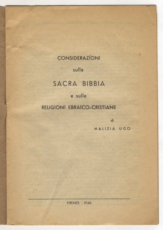 Considerazioni sulla Sacra Bibbia e sulle religioni ebraico-cristiane.