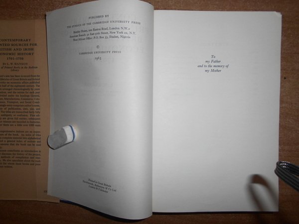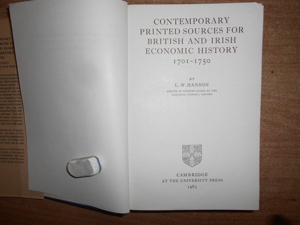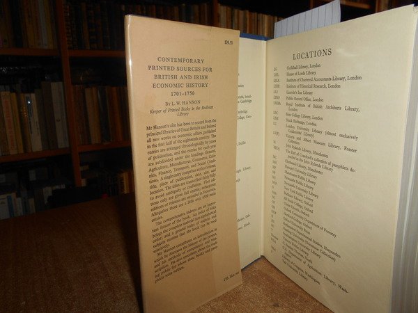 L.W. HANSON. Cambridge, At The University Press, 1963. Contemporary Printed Sources for British and Irish Economic History 1701-1750. In-8° , tela bleu con titolo in oro al dorso, doppia sovracopertina. xxiii, (1), 978 pp. In ottimo stato di conservazione. Uff. B - III - 4