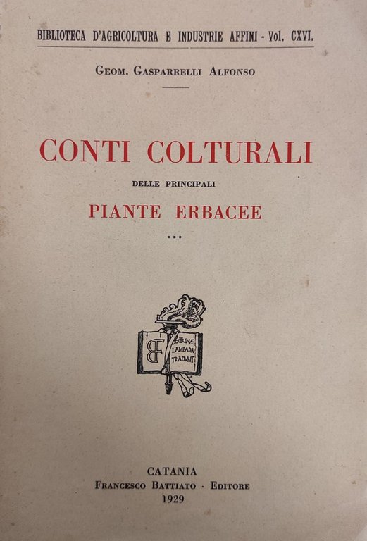 CONTI COLTURALI DELLE PRINCIPALI PIANTE ERBACEE