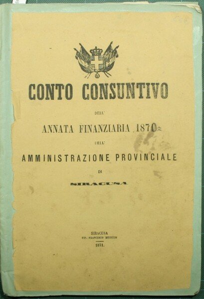 Conto consuntivo dell'annata finanziaria 1871 dell'amministrazione provinciale di Siracusa | Rare and modern books | Anonimo