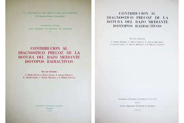 Contribución al diagnóstico precoz de la rotura del bazo mediante isótopos radiactivos. | Rare and modern books | Marín Górriz, F. (Et Al.).