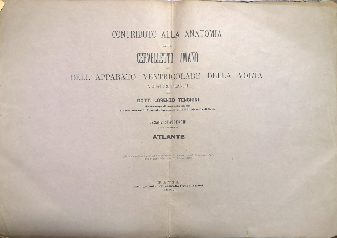 Contributo alla anatomia del cervelletto umano e dell’apparato ventricolare e della volta a quattro pilastri. Atlante. (Memoria onorata di un assegno straordinario del R.^ Istituto Lombardo di scienze e lettere nell'Adunata solenne del 25 novembre 1880).