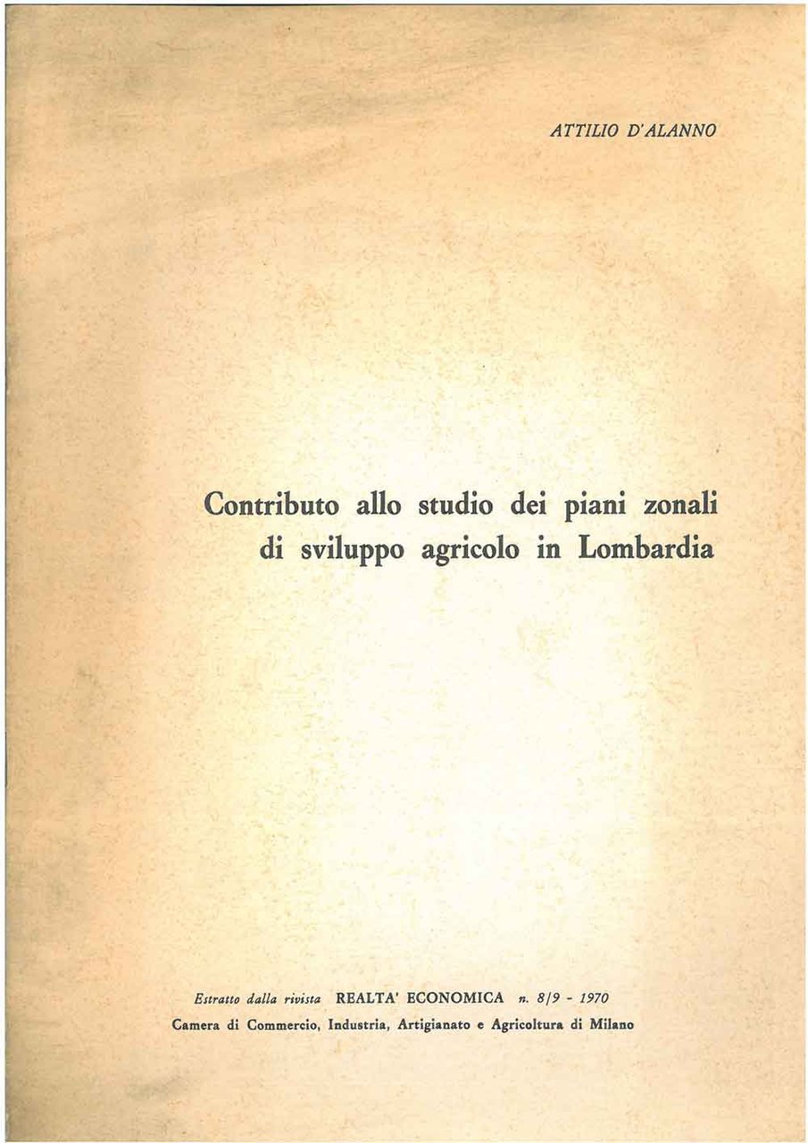 Contributo allo studio dei piani zonali di sviluppo agricolo in Lombardia. Estratto
