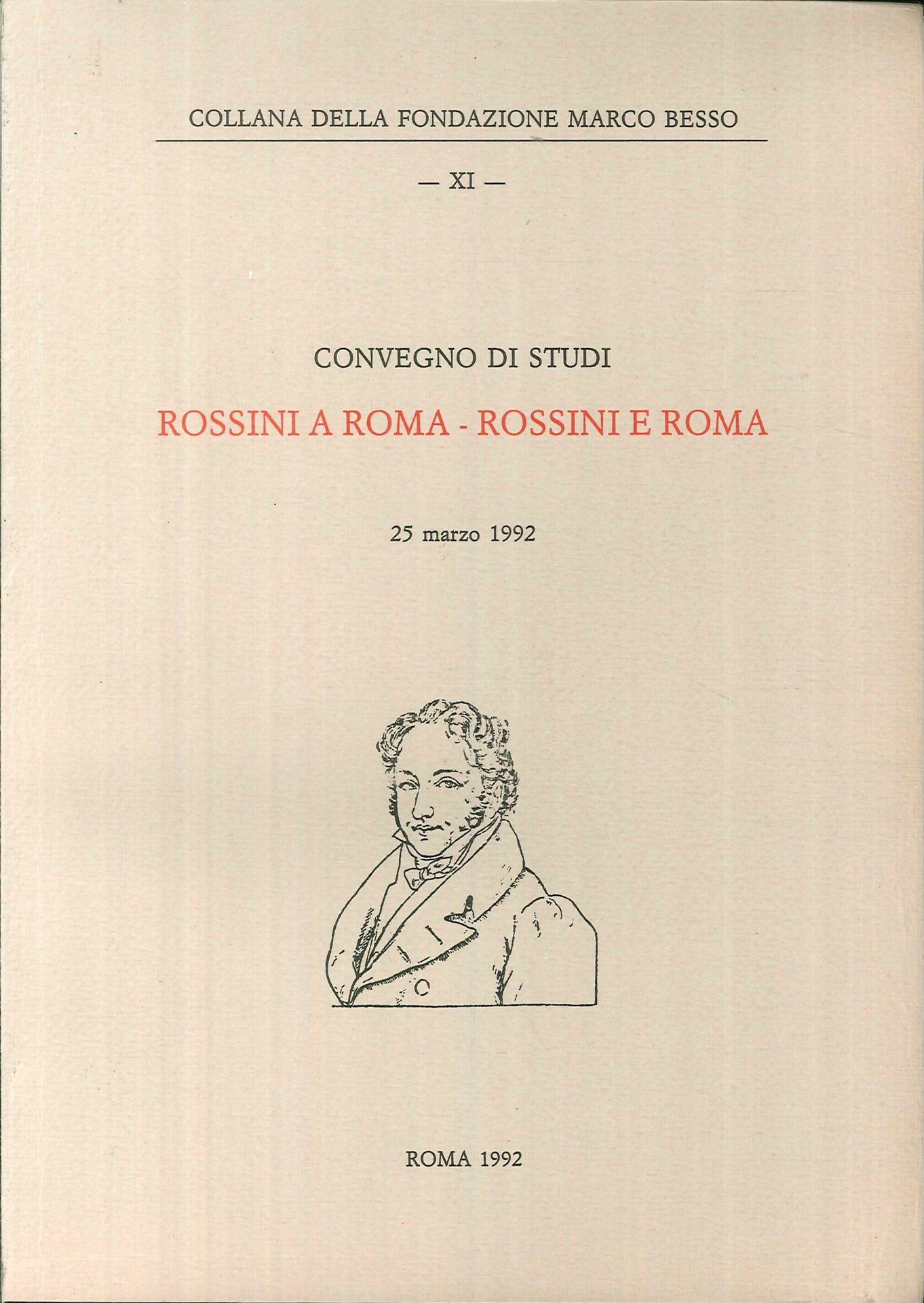Convegno di Studi. Rossini a Roma Rossini e Roma, Roma, Fondazione Marco Besso, 1992