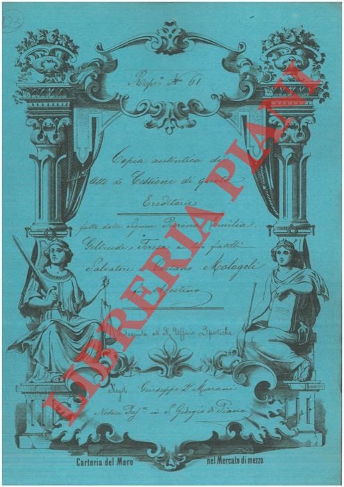 Minerbio, 1881, settembre 9, rogito originale di 16 pp. in cartella con bella cornice xilografica, timbro a secco, firma del notaio Giuseppe Marani di San Giorgio di Piano