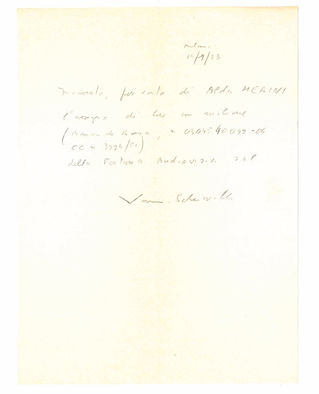Copia carbone di ricevuta autografa firmata, per conto di Alda Merini