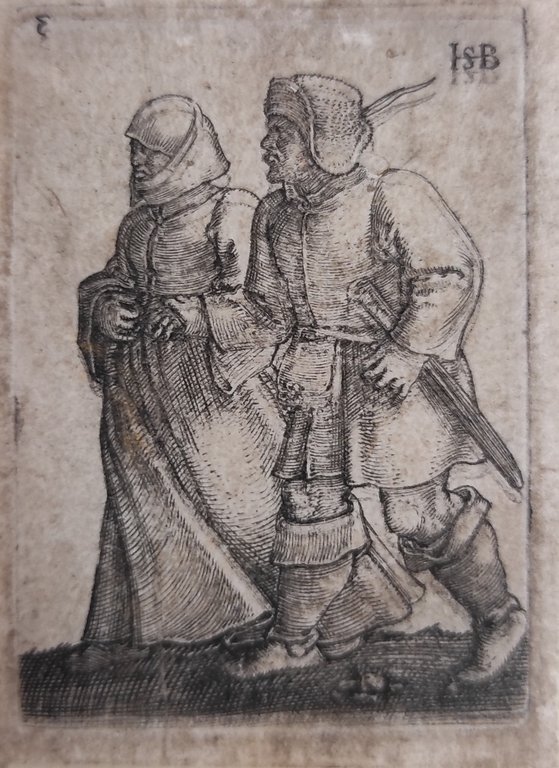 acquaforte cm. 3.5 x 4.7 Buono (Good) Buon es., piccolo buco vicino alla testa del contadino di dx.