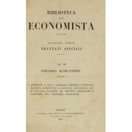 (Coquelin) - Industria manifattrice. (Ure) - Filosofia delle manifatture. (Babbage, Prudhon, Fontenay) - Macchine. (Blanqui, Clement, Dareste, Coquelin, Levasseur, Say) - Corporazioni di arti. (Mc Culloch, De Thunen, Cherbuliez, Coquelin) - Mercedi. (Fix, Villermé, Audiganne) - Condizione degli operai. (Levasseur) - Storia delle classi lavoratrici in Francia. Introduzione di Francesco Ferrara