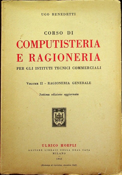 Corso di computisteria e ragioneria per gli istituti tecnici commerciali: II. Ragioneria generale. | Rare and modern books | Benedetti, Ugo.