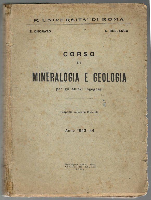 Corso di mineralogia e geologia per allievi ingegneri- Anno 1943-44