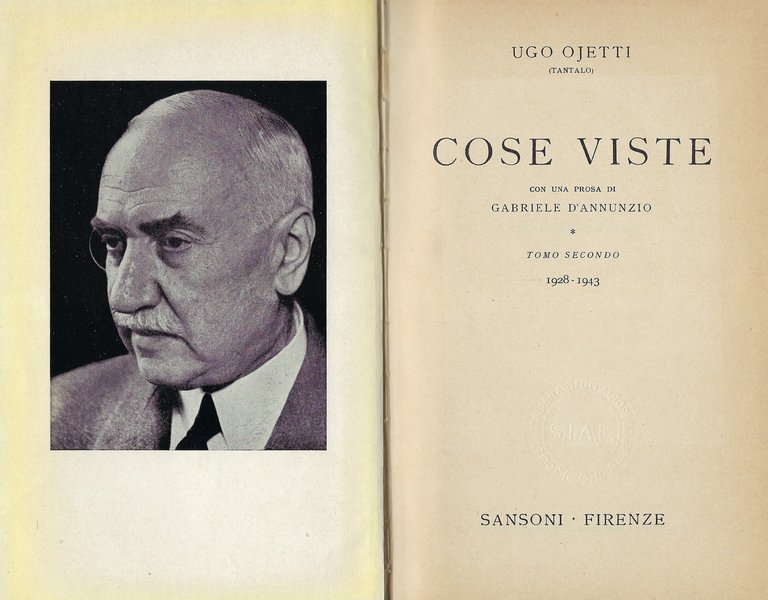 Cose viste 1928-1943 con una prosa di Gabriele D'annunzio - tomo secondo