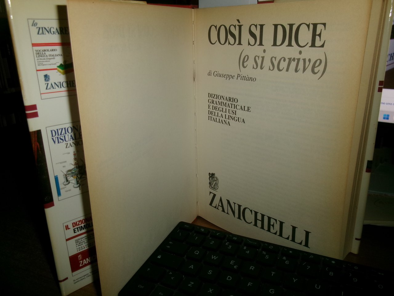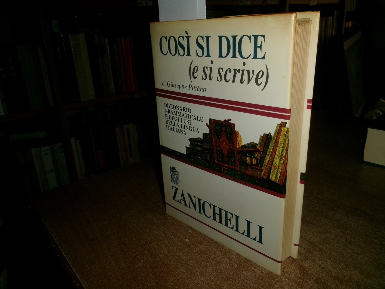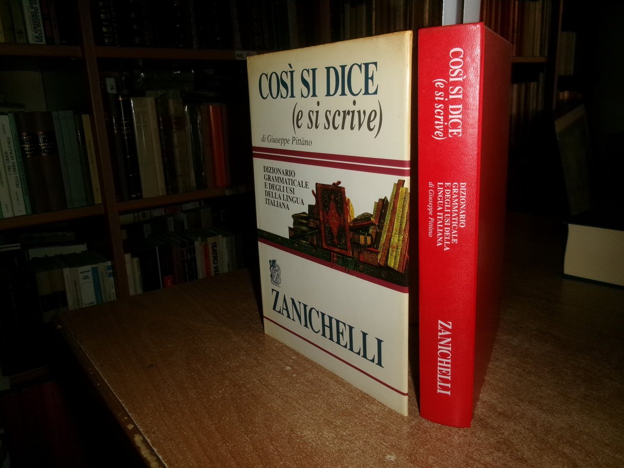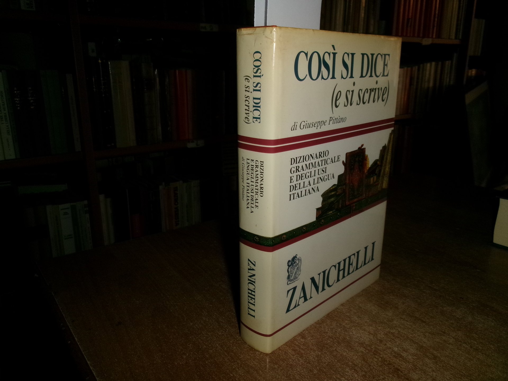 di Giuseppe Pittàno. Bologna, Zanichelli Editore, 1988. Così si dice (e si scrive). Dizionario grammaticale e degli usi della lingua italiana. In-8°, cartonato rosso con sovracopertina. 381 pp. Libro classificato in buono stato di conservazione perchè presenta sovracopertina e bordi leggermente ingialliti. Alcuni segni (come da foto) in poche pagine. Neg. Lett. mod. mob. F