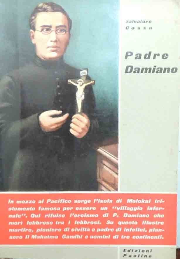 Salvatore Cossu, Padre Damiano. L’eroe di Molokai, Edizioni Paoline, s.l. (ma stampato a Modena, presso le Edizioni Paoline) 1958, terza ed., pp. 324, 4 c. di tavv. f.t. ill. b.n., cm 19, br. ed. Collana Biografie di contemporanei. Lievissime tracce d’uso alla brossura, leggera brunitura della carta, minime fioriture a tagli e prime e ultime carte, per il resto buona copia.