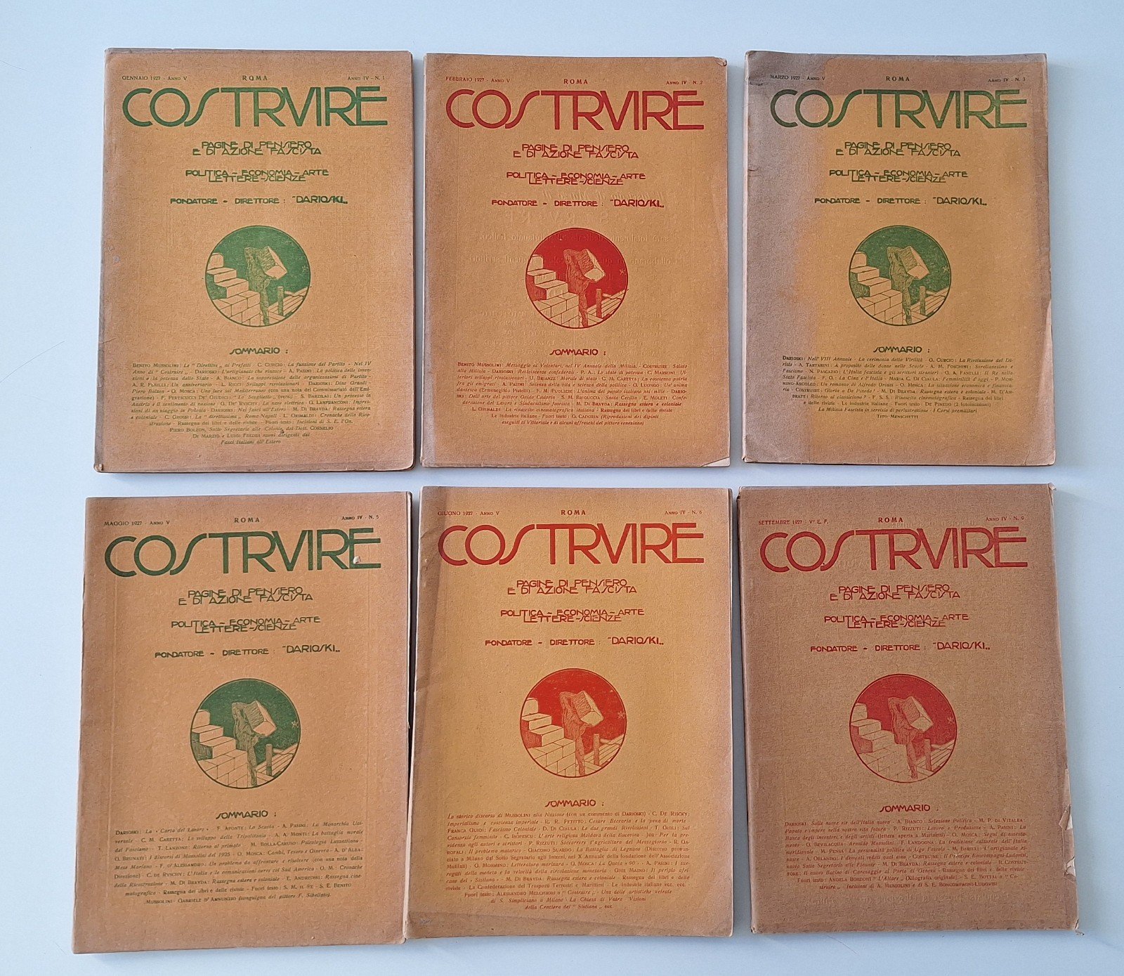 COSTRUIRE PAGINE DI PENSIERO ... E DI AZIONE FASCISTA ANNO 1928 N. 1-2-3-5-6-9 | Rare and modern books |