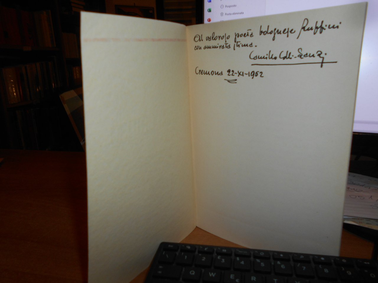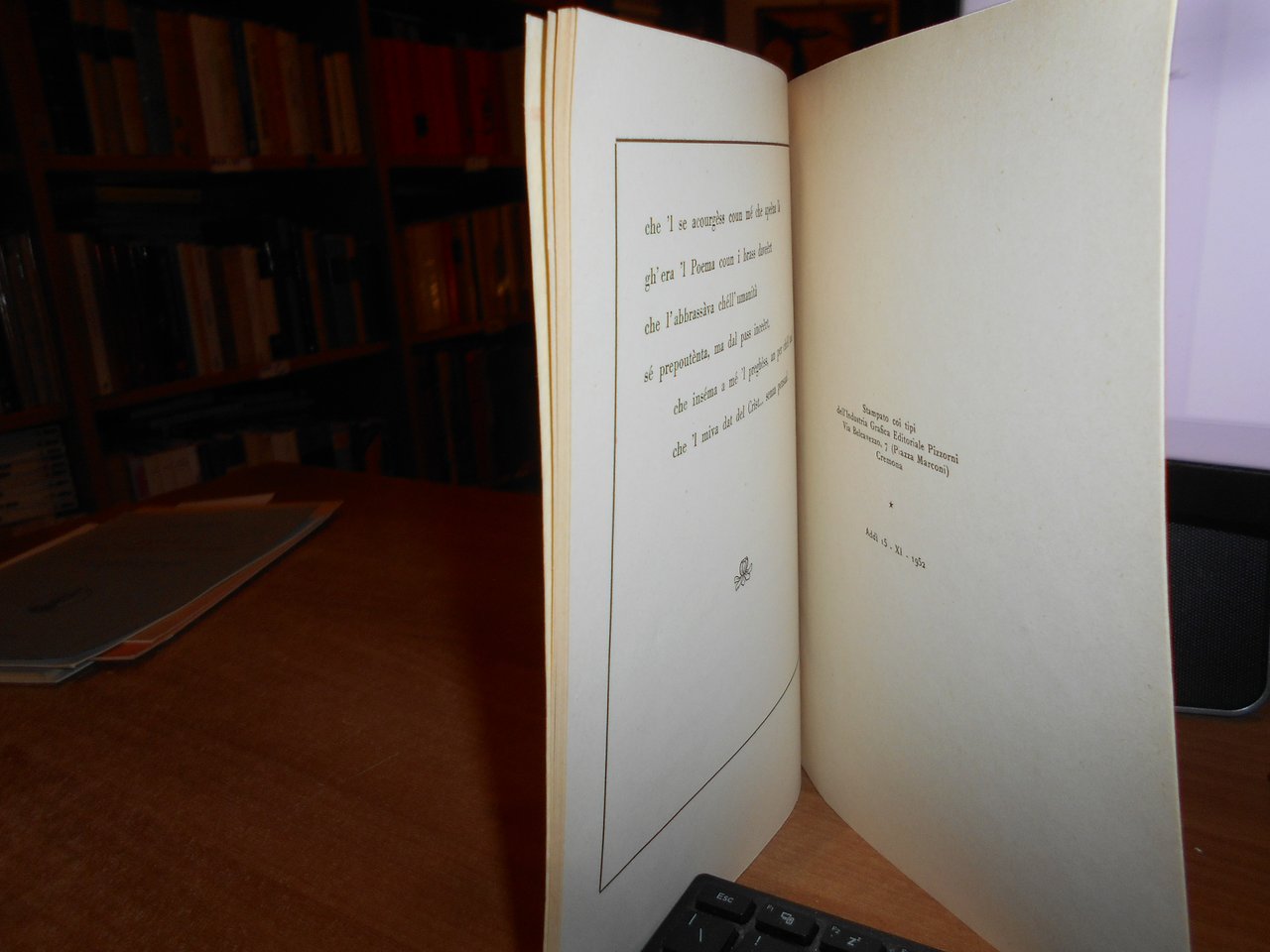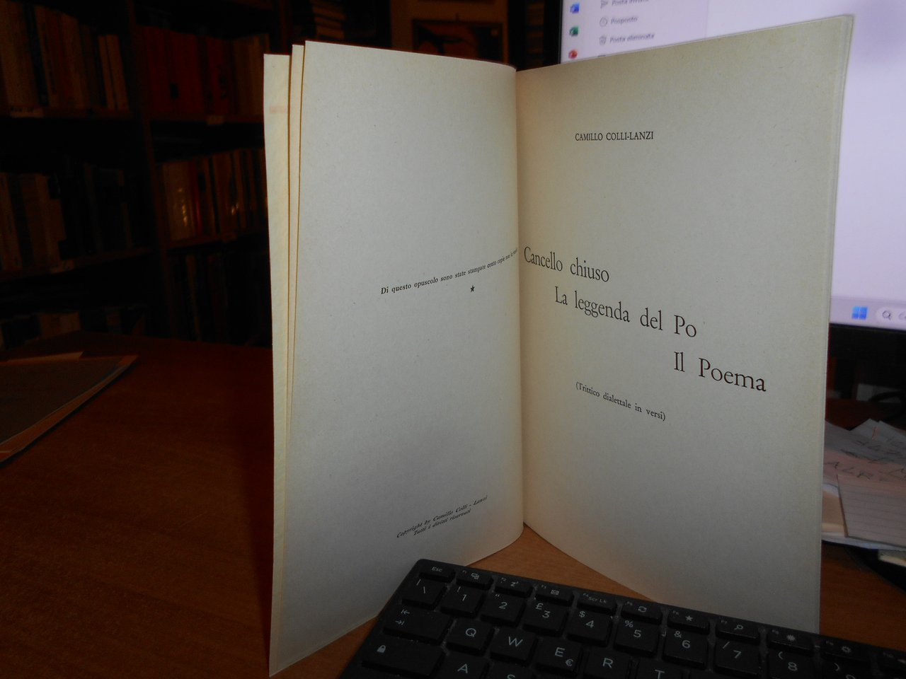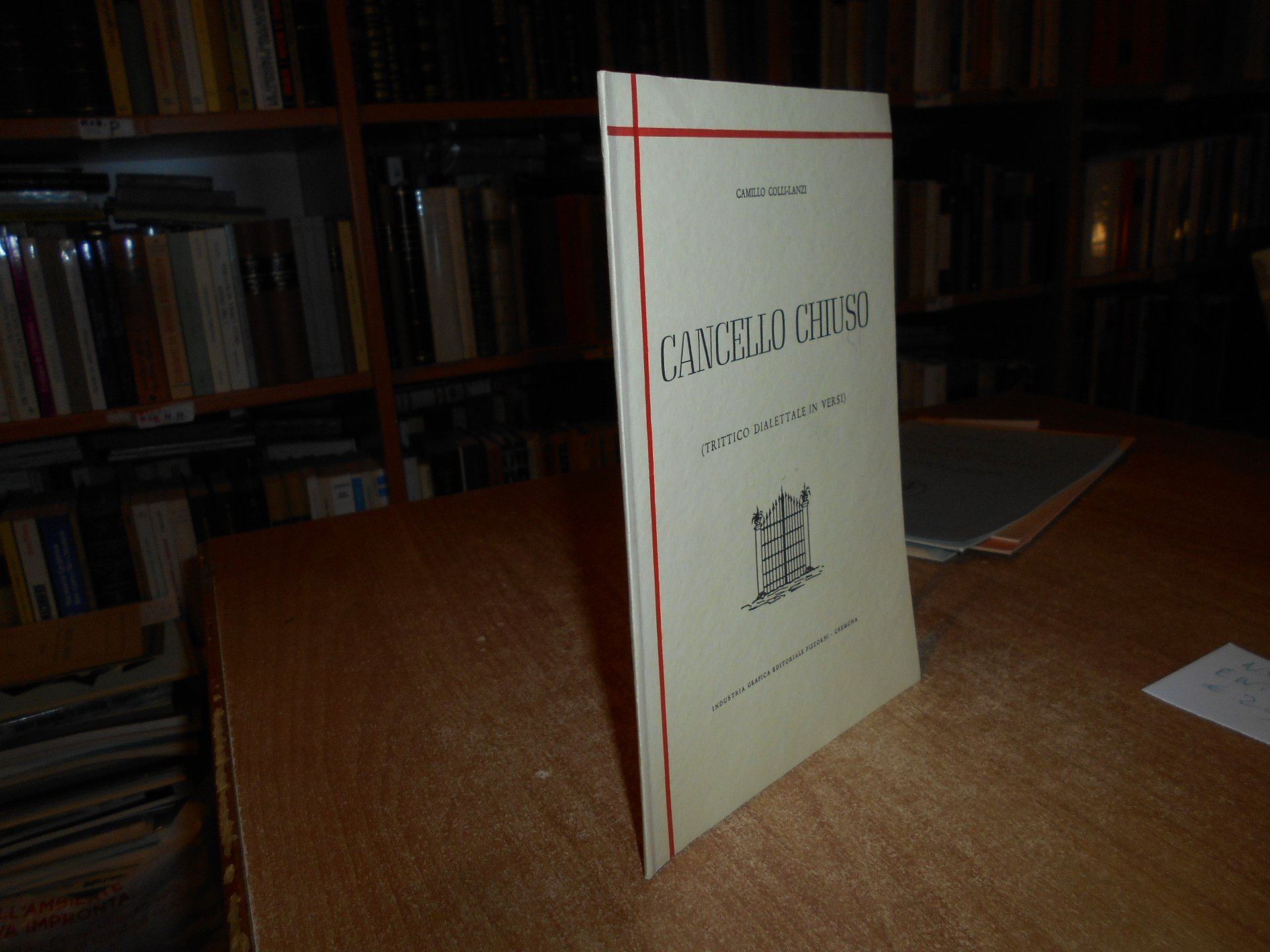 CAMILLO COLLI-LANZI. Cremona, Industria Grafica Editoriale Pizzorni. CANCELLO CHIUSO (Trittico dialettale in versi). In-8°, cart. edit. con pagine non numerate. Raro opuscolo come nuovo con una dedica firmata dall' Autore nella prima bianca. Di questo opuscolo sono state stampate cento copie non in vendita. Neg. Bol. mob. S entro busta trasp.