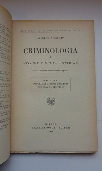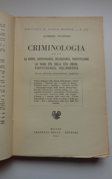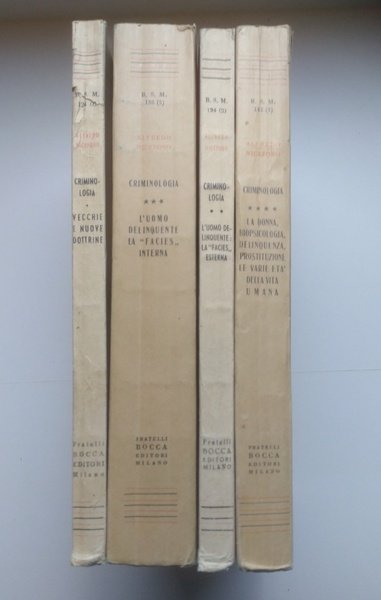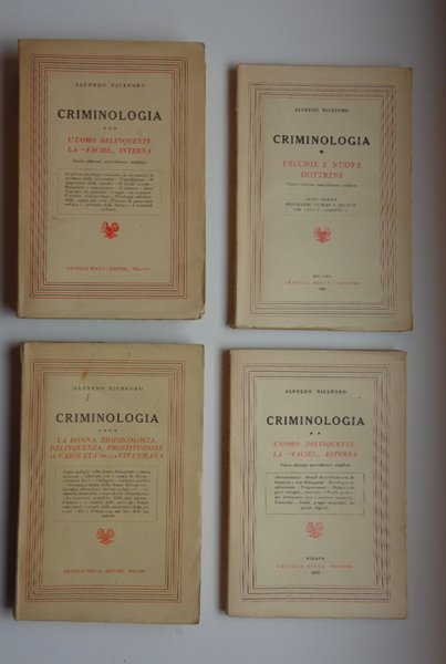 Criminologia. Vol. I: Vecchie e nuove dottrine; Vol. II: L'uomo delinquente: la facies esterna; Vol. III: L'uomo delinquente: la facies interna; Vol. IV: La donna, biopsicologia, delinquenza, prostituzione, le varie età della vita umana.