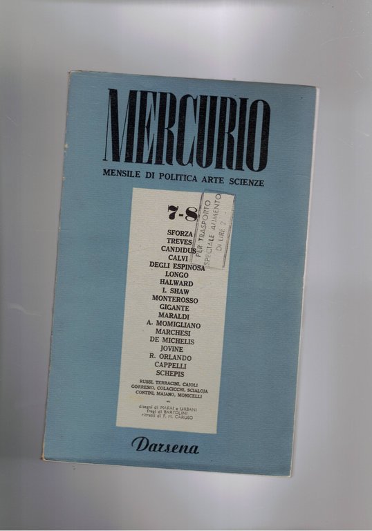 Criterio, mensile di coltura società e politica. Disponiamo di tutto il pubblicato dal 1957 al 58 tranne il n° 1 del secondo anno che termina con il n° di aprile del 1958. Tra i componenti del comitato direttivo: Carlo Antoni, Leo Valiani, Bruno Visentini.