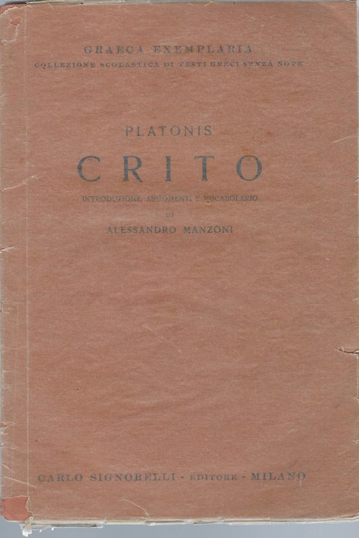 Critone con introduzione,argomento e vocabolario di Alessandro Manzoni