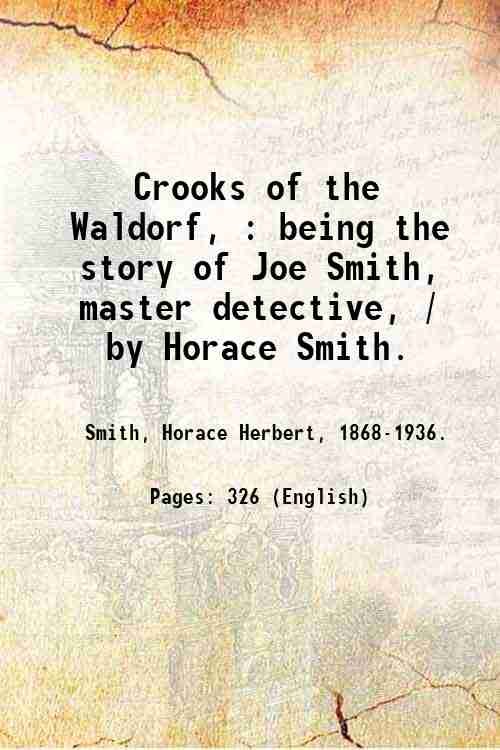 Crooks of the Waldorf, : being the story of Joe Smith, master detective, / by Horace Smith. 1929