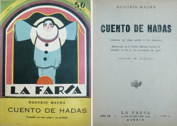 Madrid, La Farsa, 1929. 4to. menor; 60 pp., con ilustraciones de Almada. Cubiertas originales de Masberger.