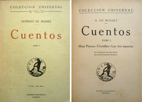 Cuentos. Tomo I: Mimí Pisón. Croisilles. Las dos amantes. Traducción de Luis Fernández Ardavín. | Rare and modern books | Musset, Alfred De.