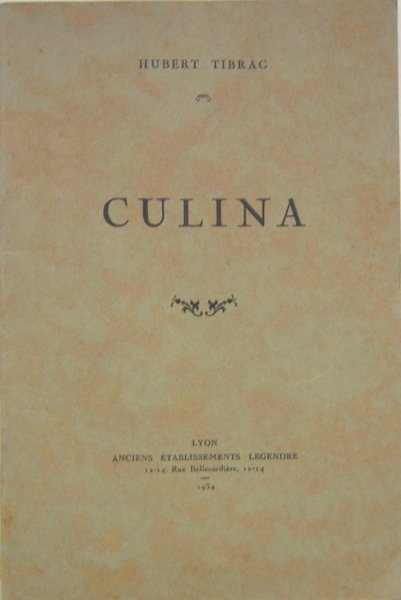 Lyon, Anciens Etablissements Legendre, 1934. Plaquette In-12 brochée, couverture imprimée. 11 ff. Petites poésies gourmandes à la gloire de la quenelle, du cassoulet, de la bouillabaisse.