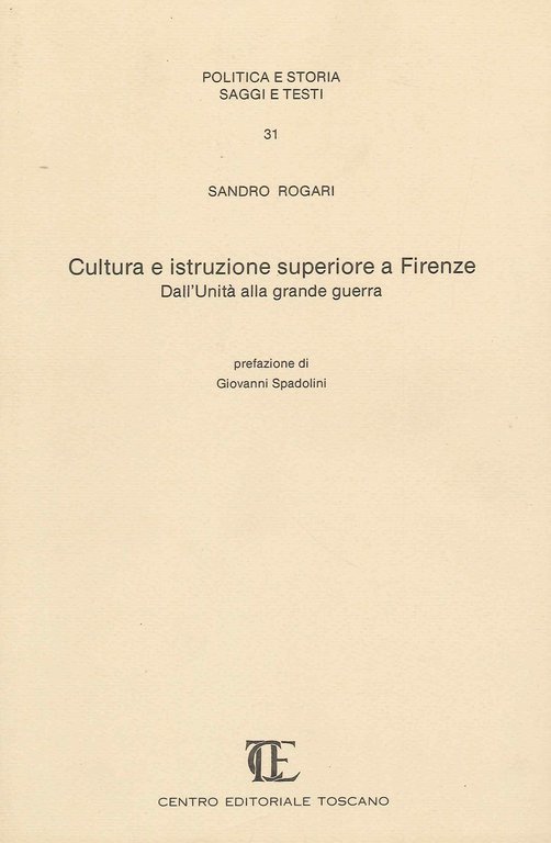 Cultura e istruzione superiore a Firenze, dall'Unità alla grande guerra, Firenze, CET - Centro Editoriale Toscano, 1991
