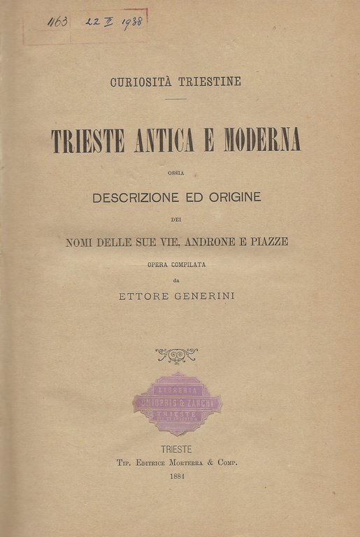 Curiosità triestine. Trieste antica e moderna ossia descrizione ed origine dei nomi delle sue vie, androne e piazze.